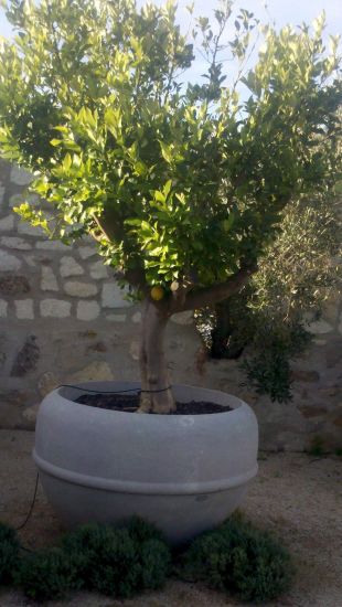 L'idée a donc été de créer, pour ce jardin contemporain, un pot en pierre à "Richemont bleu" pour mettre en valeur les citronniers et les kumkoatier de ce jardin de plantes aromatiques au centre de lui-même d'une oliveraie dans les Alpilles. Pour ce faire, nous avons tout d'abord dessiné le pot, puis avec une entreprise partenaire, spécialisée dans la taille de la pierre, nous l'avons créé. Une fois ces pots réalisés, nous avons pu les placers donnant la touche finale à ce jardin contemporain.